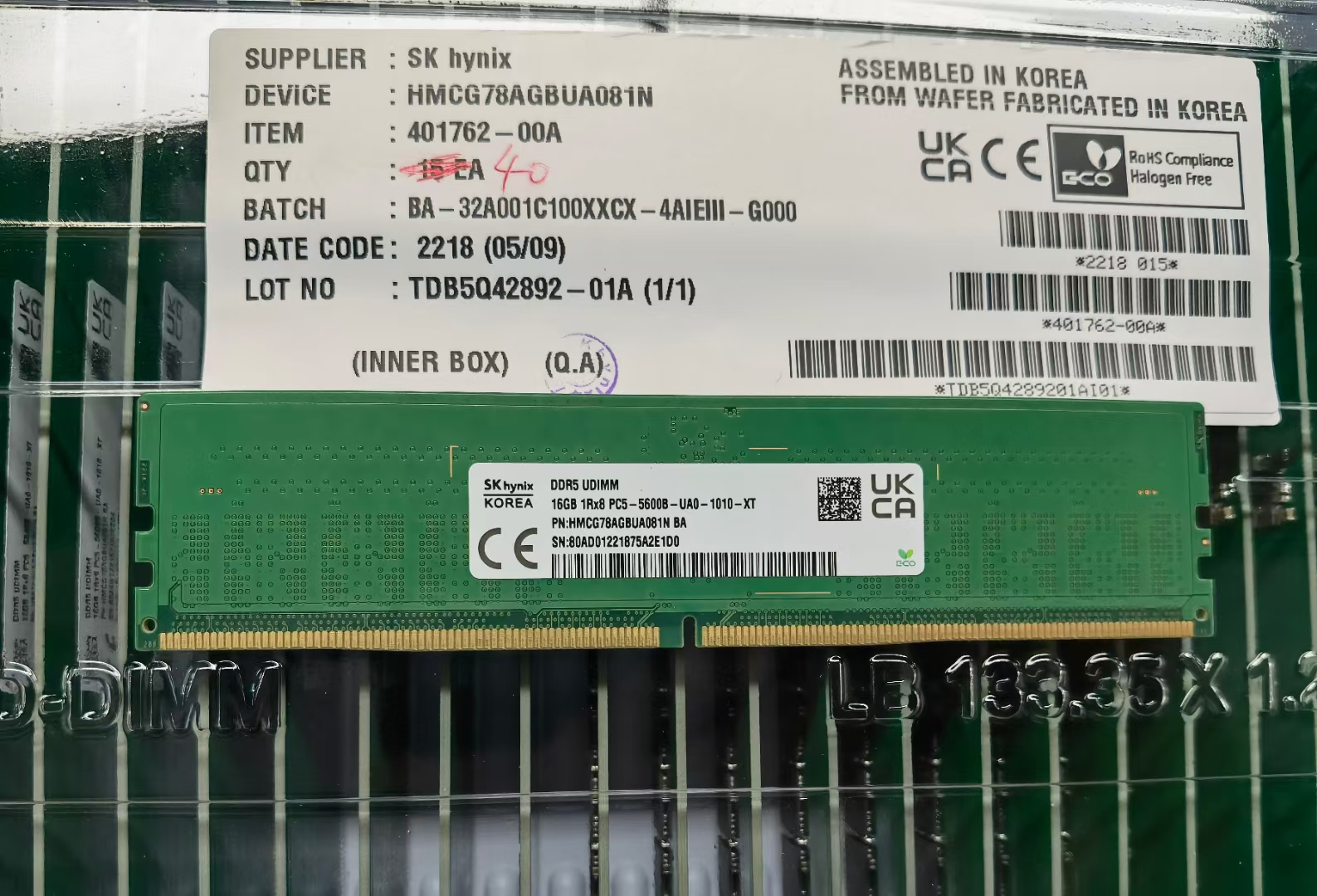 海力士 全新16GB HMCG78AGBUA081N 16G DDR5 5600频...