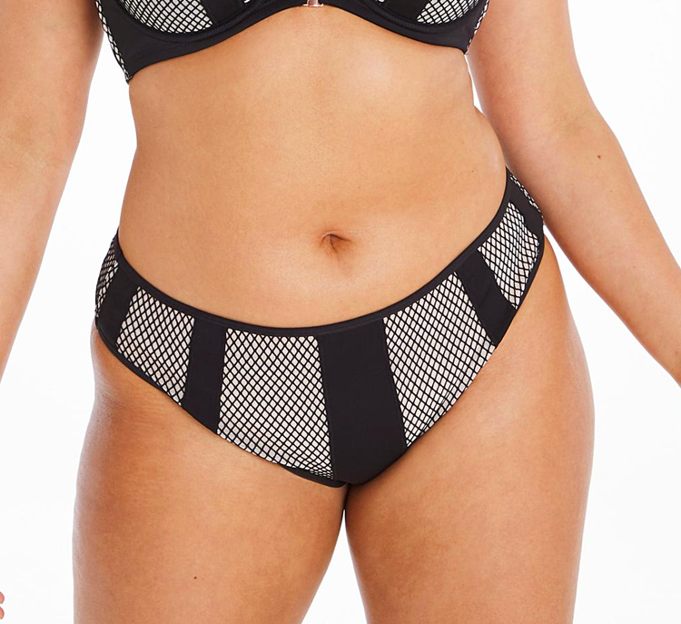 E33 欧单黑色网纱大码女内裤 透气时尚网格中腰三角...