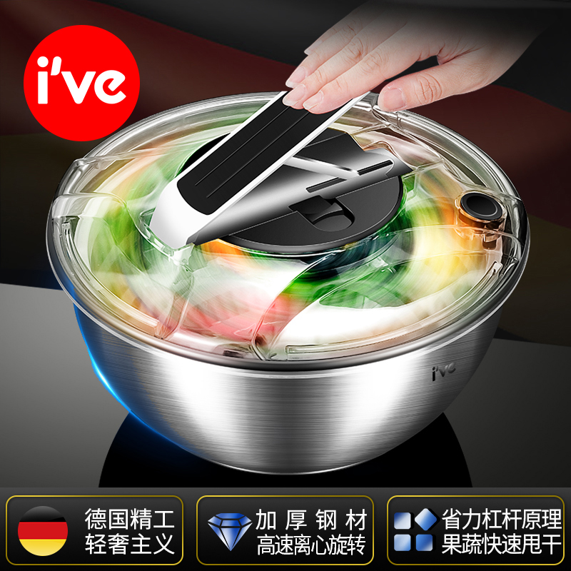 德国ive 厨房沙拉蔬菜脱水器 家用洗菜甩菜神器甩干...