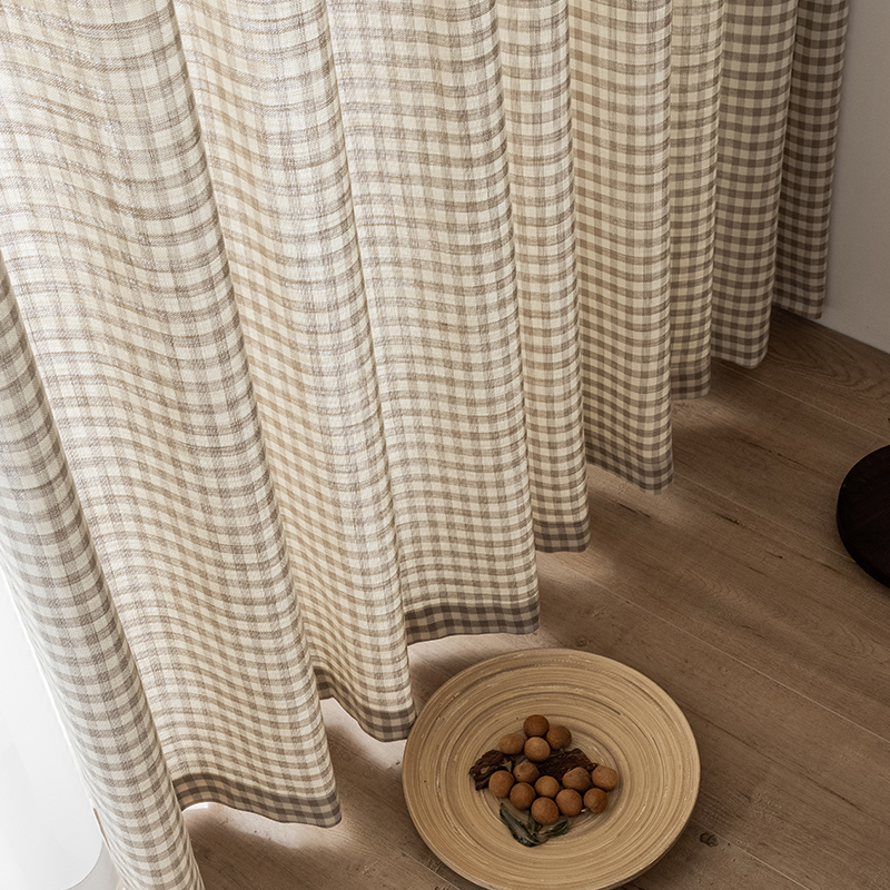 日式棉麻格子窗帘日系田园原木风客厅卧室飘窗2025...