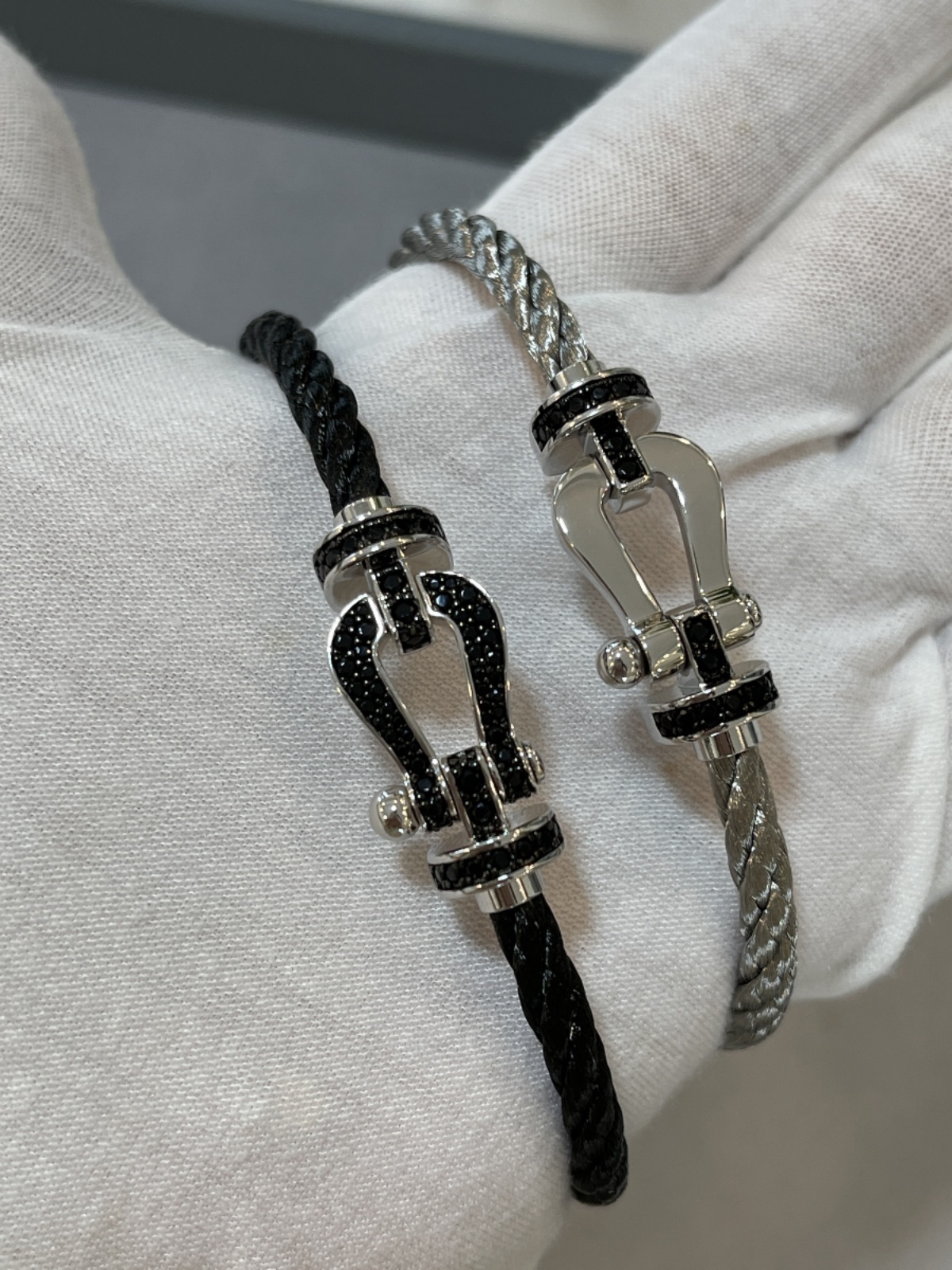 纯银黑武士黑色情侣大号半镶黑钻马蹄扣钢绳手链手...