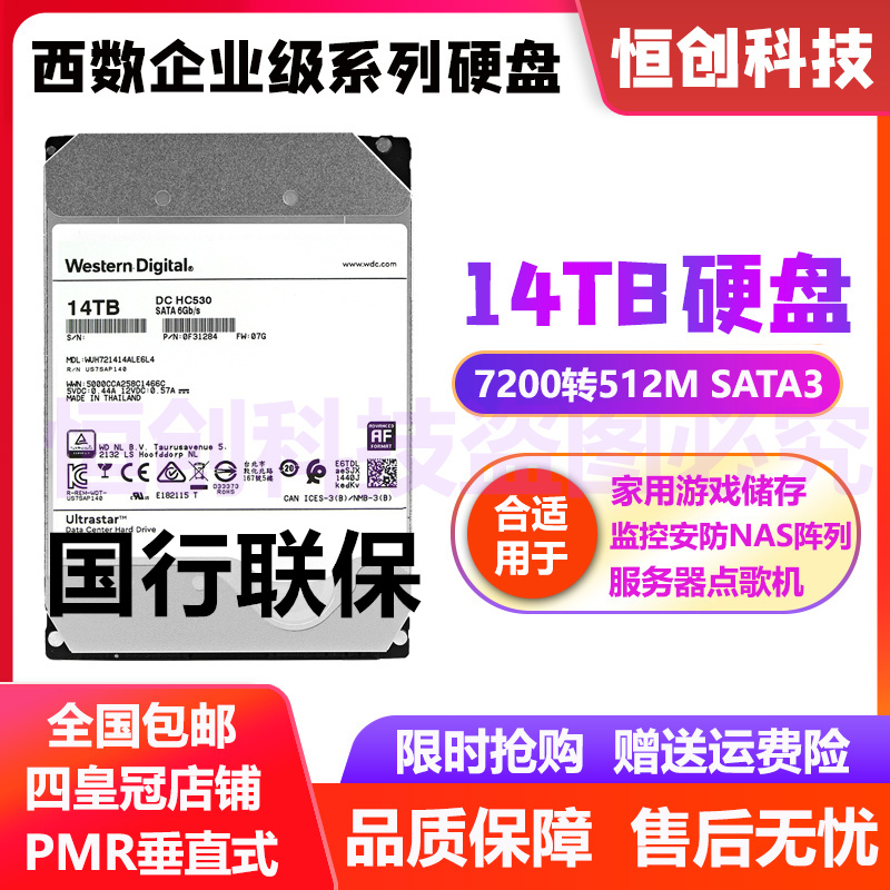 国行西数14T企业级氦气硬盘 14TB监控录像NAS储存14...