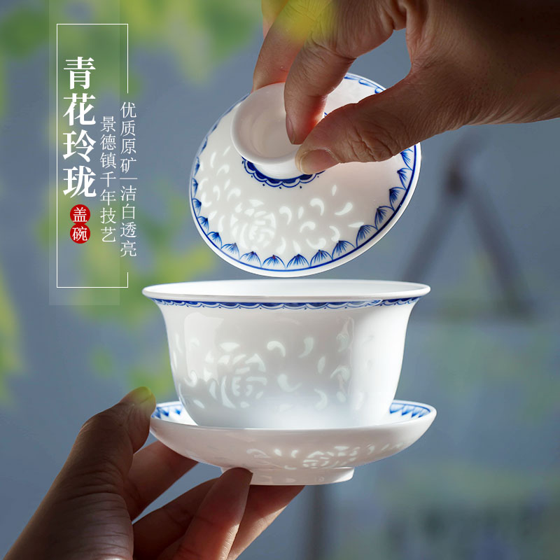 瓷都窑火景德镇玲珑瓷盖碗茶杯不烫手家用单个手绘...