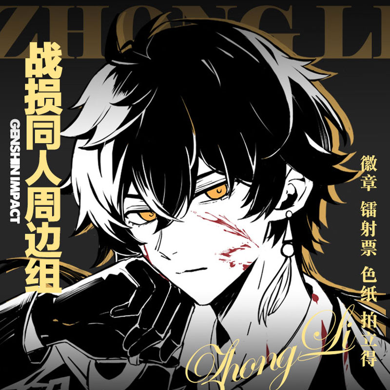 原神同人周边谷子战损钟离达达利亚徽章吧唧色纸拍...