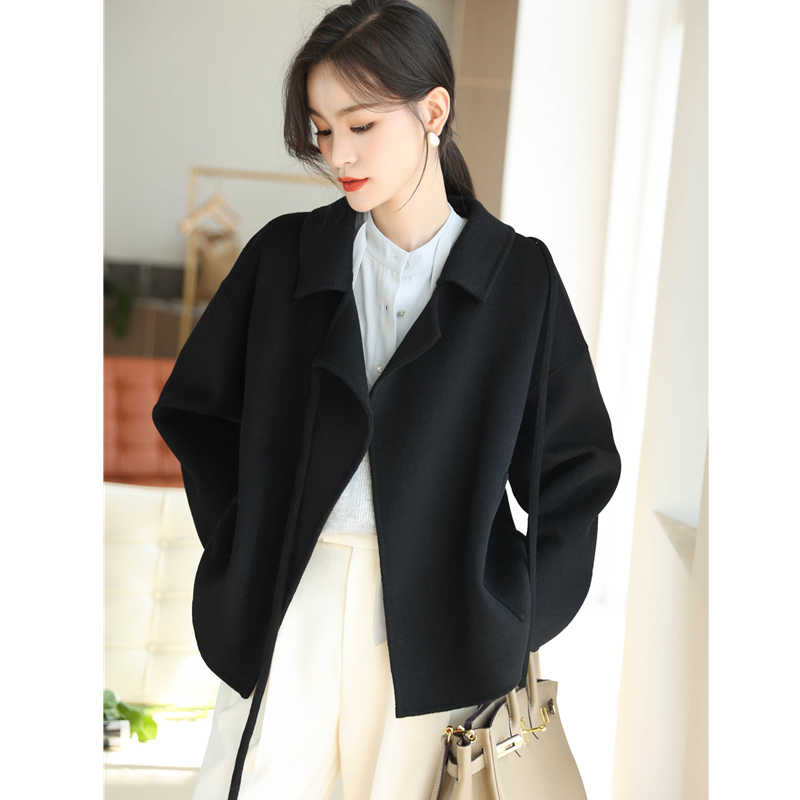 小众腔调山本风 系带设计全羊毛双面呢短大衣女冬