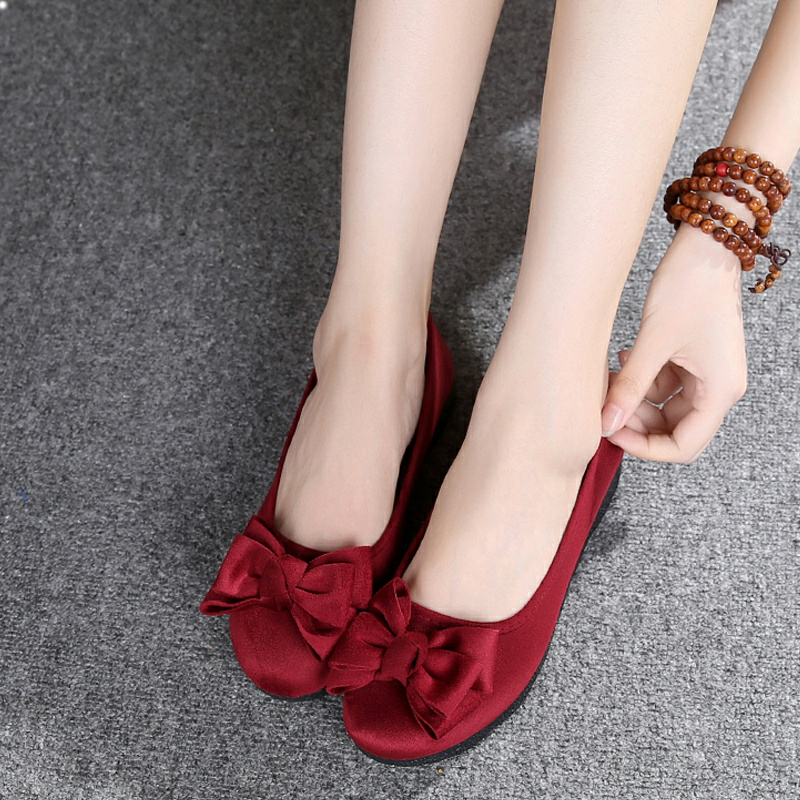 新款老北京布鞋女鞋平底软底豆豆单鞋蝴蝶结圆头浅...