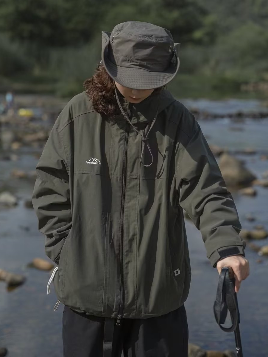 日系连帽冲锋衣外套女宽松春秋季2023新款cityboy工...