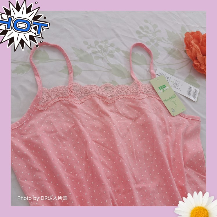嘉莉诗女款全棉拼接蕾丝波点吊带背心休闲甜美风粉...