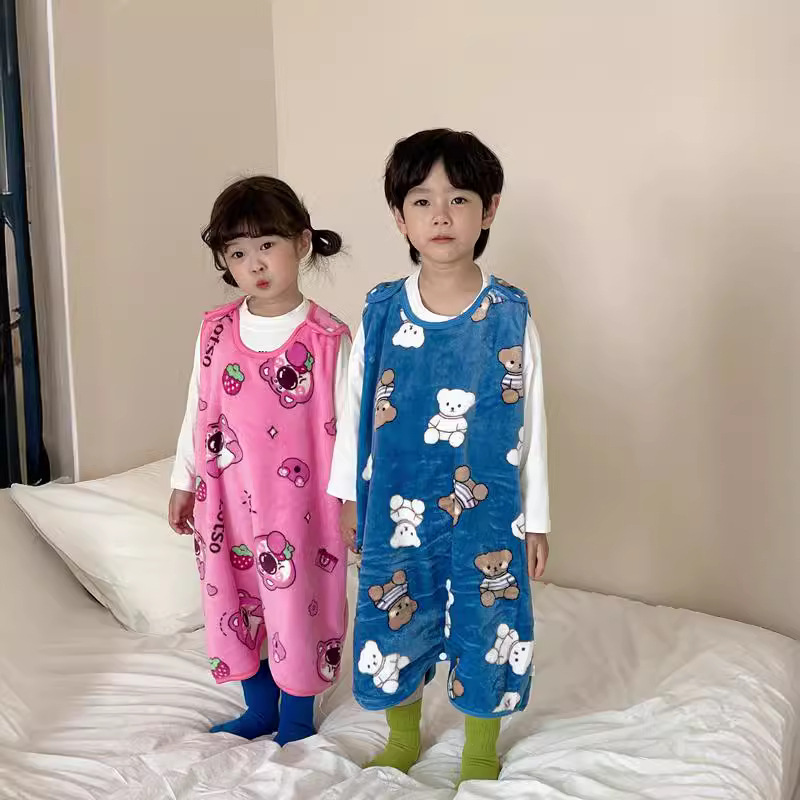 宝宝珊瑚绒睡袋背心式婴儿秋冬防踢被神器儿童无袖...