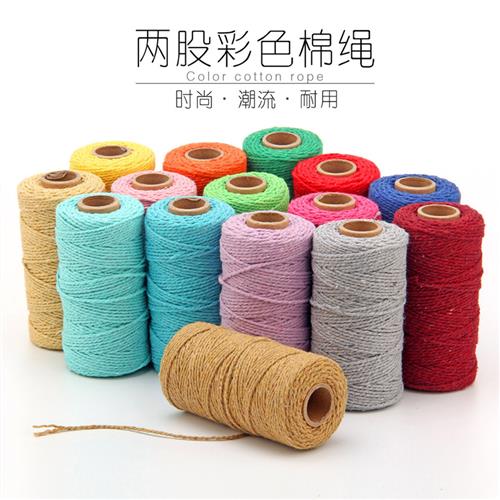 2mm两股棉绳现货3毫米彩色编织捆扎绑装饰装修吊牌...