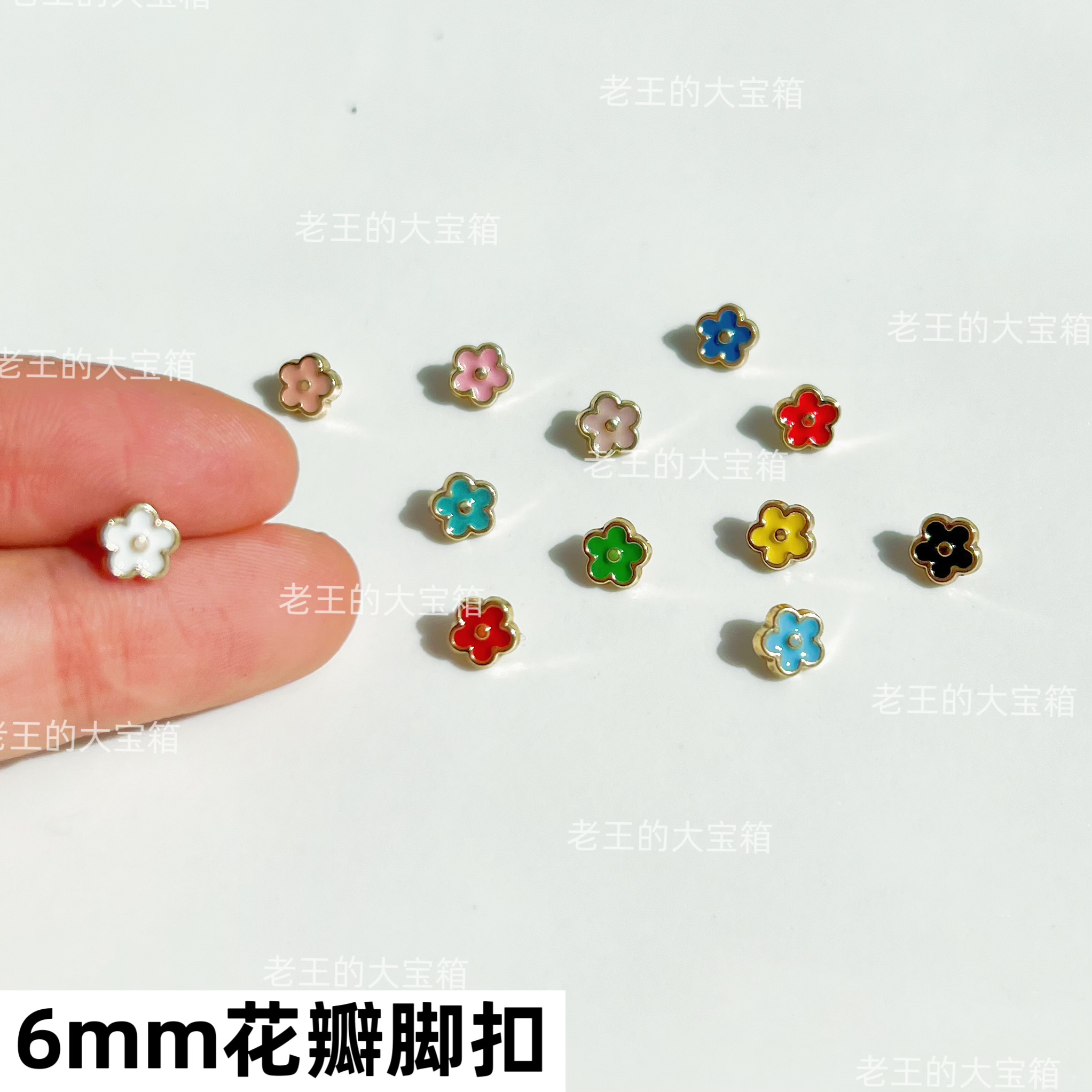 6mm迷你小花朵纽扣彩色花花小扣子亮晶晶滴油彩虹色...
