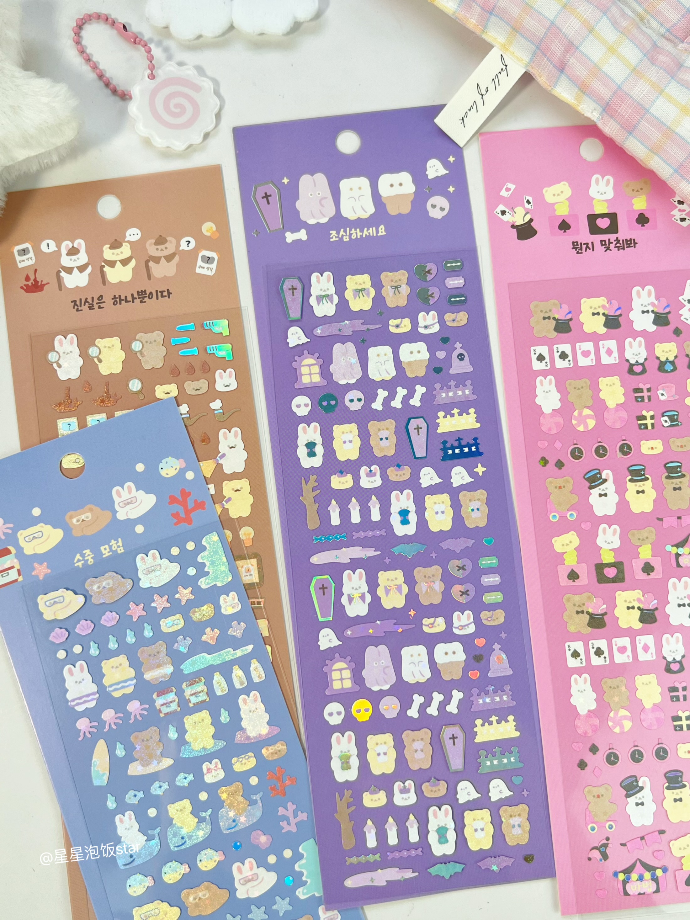 韩系ins超大张幽灵侦探小熊小兔咕卡贴纸烫银diy手...