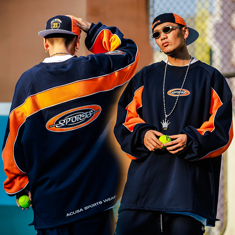 ACUSA SPORTS嘻哈年轮环形拼色插肩袖摇粒缓加厚套...
