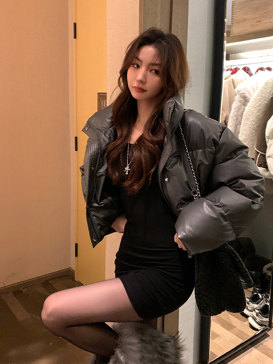 免洗PU皮羽绒服女2023韩版宽松加厚短款白鸭绒面包...
