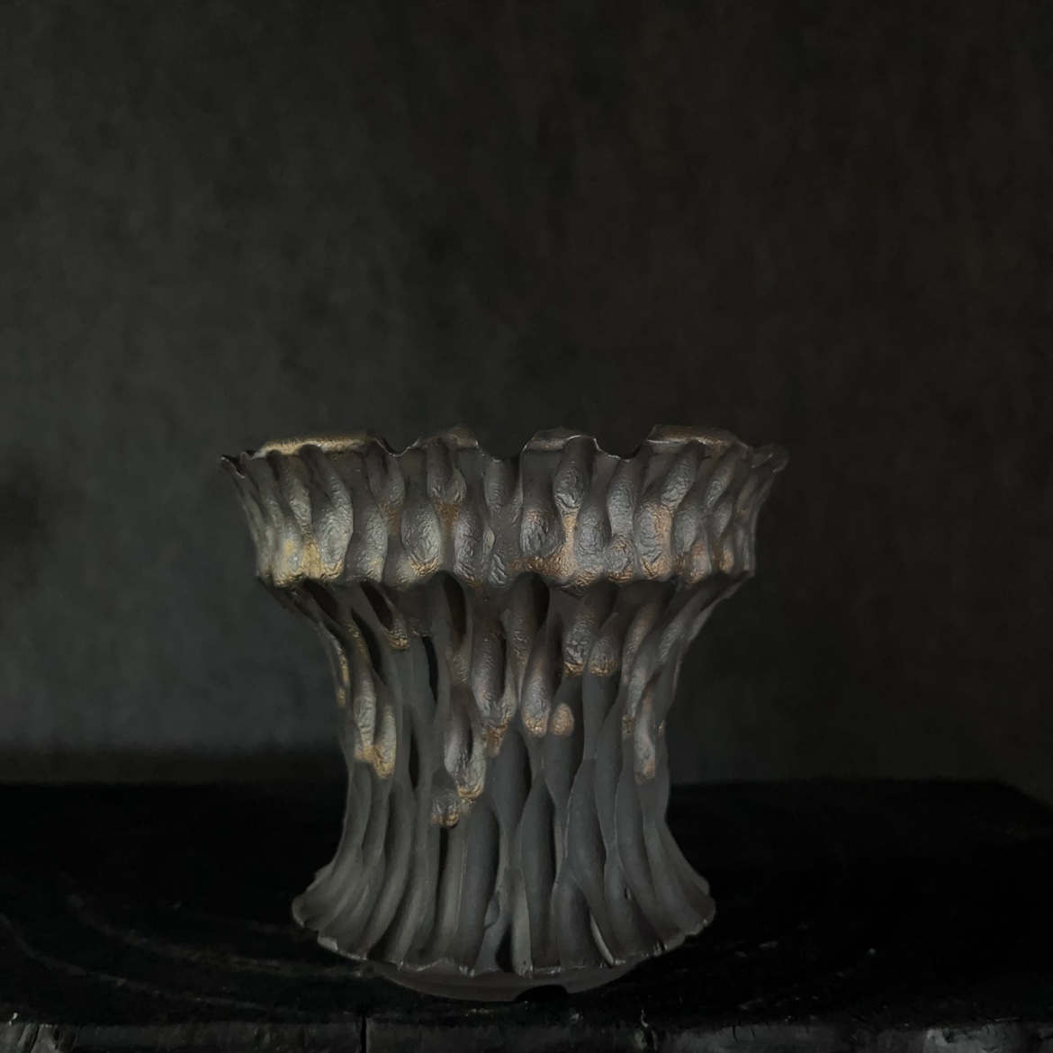 小号盆重工纹理鎏金块根盆塊根植木钵手工黑金潮龙...