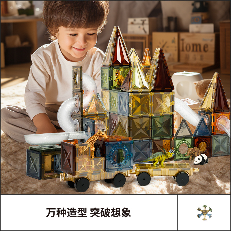 轨道磁力片管道拼图彩窗钻面强磁强力新年小礼物儿...