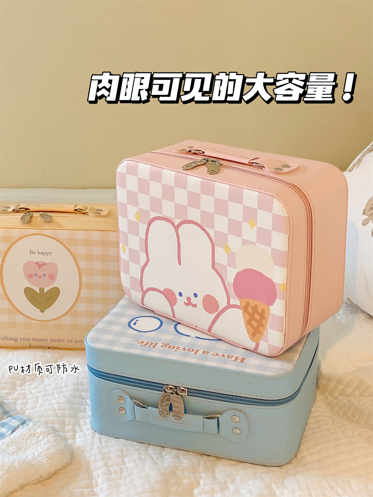 手提化妆包女便携可爱2023新款旅行化妆品收纳盒防...