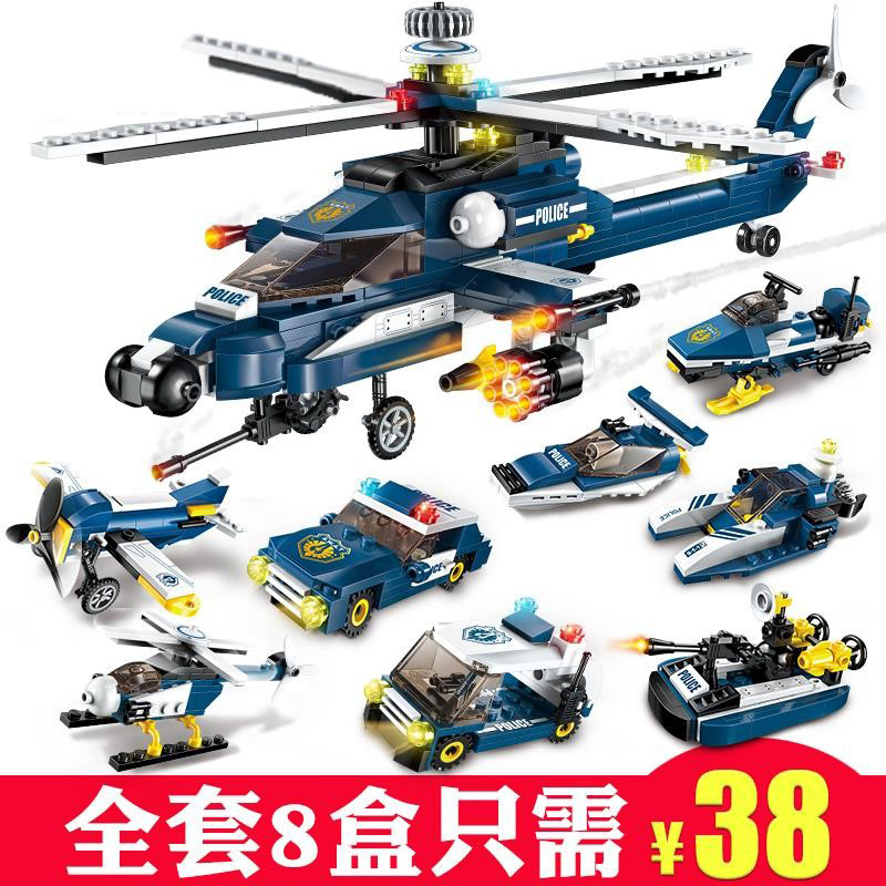 直升机积木益智拼装飞机男孩子汽车玩具拼图战斗机...