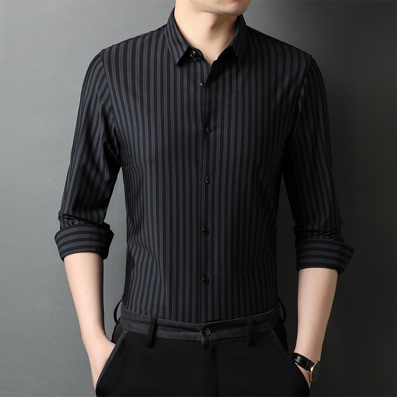 无痕长袖衬衫男商务休闲衬衣春秋季韩版竖条纹百搭...