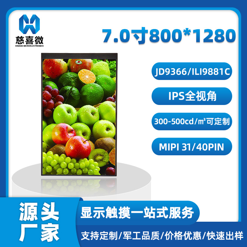 7.0寸 800*1280/JD9366/ILI9881标准31/40PIN显示屏...