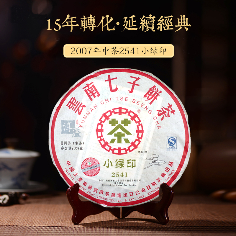 中茶2007年小绿印2541普洱茶生茶15年老普洱茶云南...