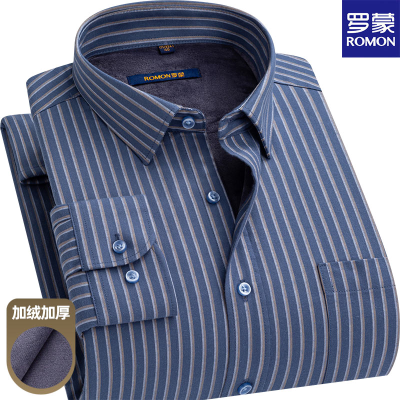 Romon/罗蒙保暖衬衫男厚款冬季加绒加厚商务休闲条...
