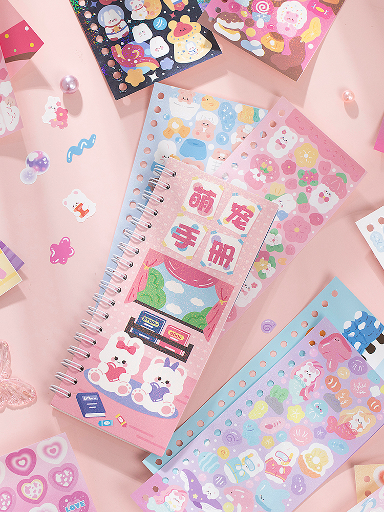 有控 语闲咕卡贴纸本 可爱泡泡贴纸书熊兔造景DIY手...