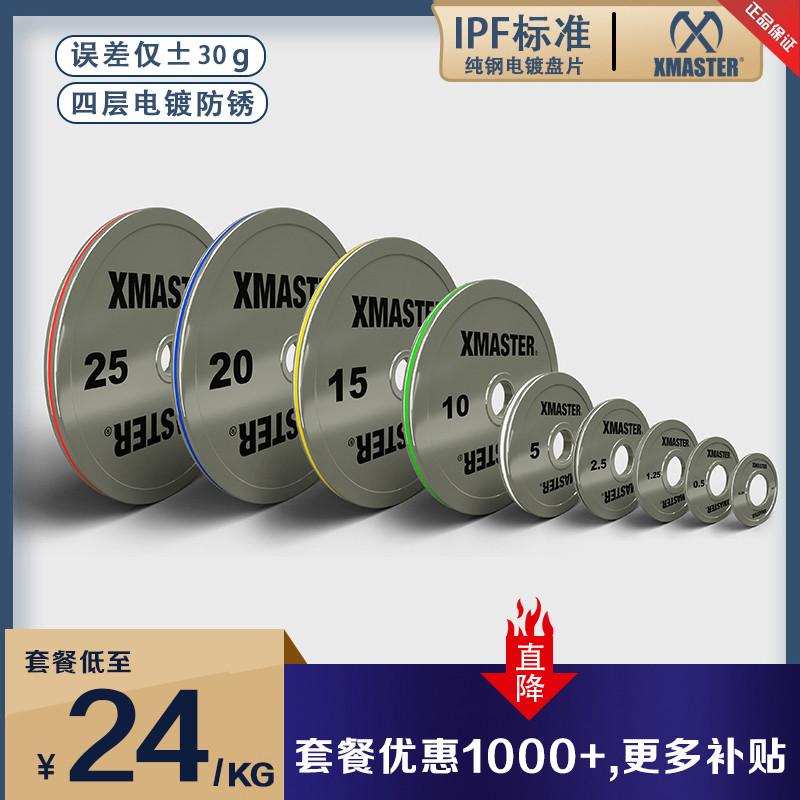 XMASTER力量举杠铃片钢片力量片纯钢电镀片大孔哑铃...