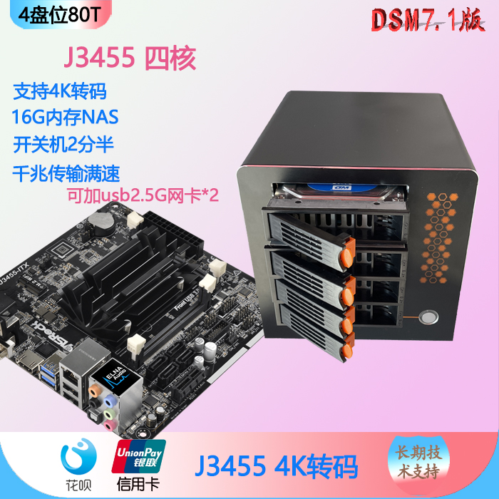 J3455NAS主机4盘2.5G双网4K转码黑群软路由云存储静...