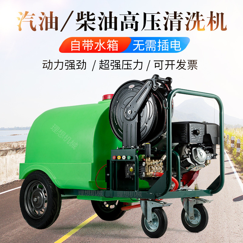 柴油洗车机高压汽油清洗机商用移动带水箱下水管道...
