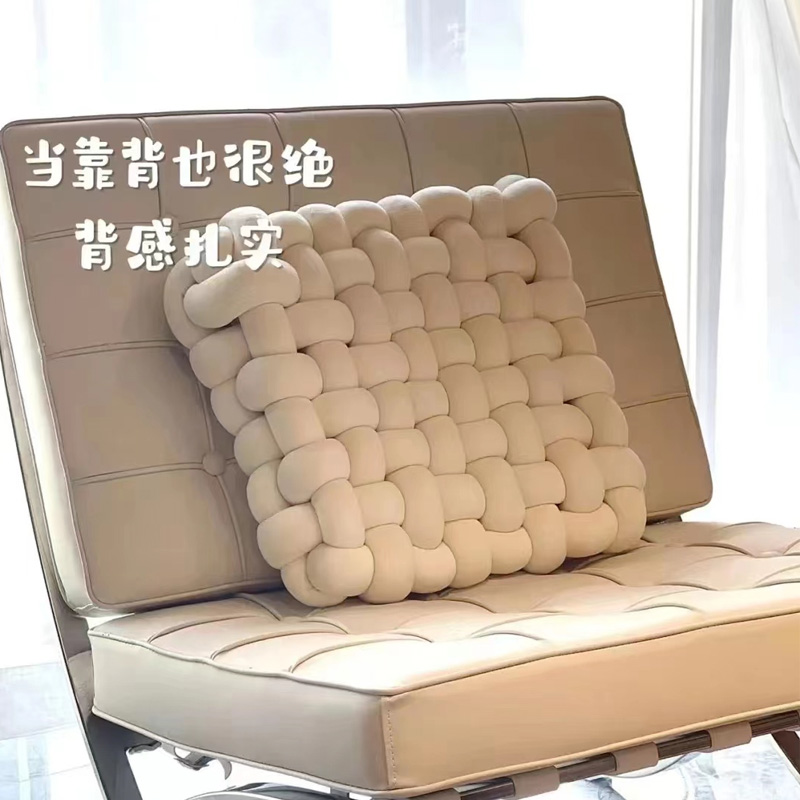 长也夕小红书打结坐垫ins抱枕靠背纯色飘窗方形绒感...