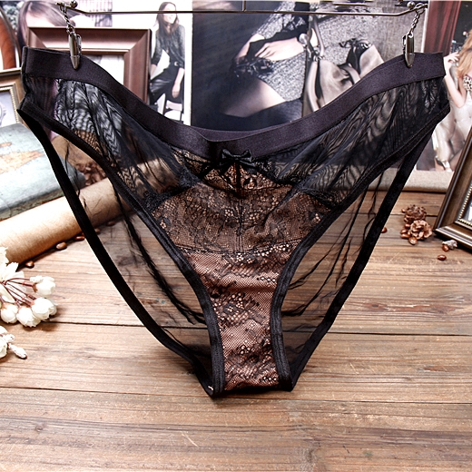 M15大码女内裤 性感诱惑中腰爽滑透气黑色网纱蕾丝...