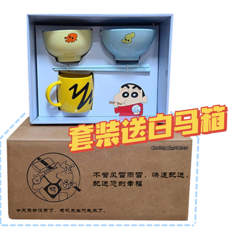 蜡笔小新卡通动漫陶瓷杯子饭碗餐具筷子马克杯四件...