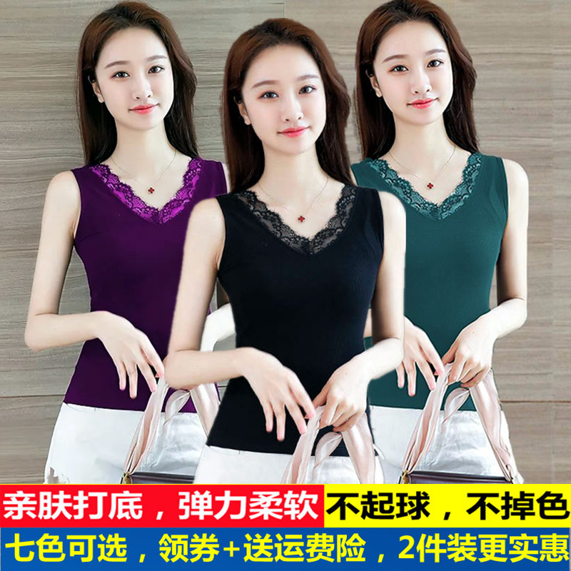 大码蕾丝性感吊带背心女内搭胖m新款无袖修身打底衫...