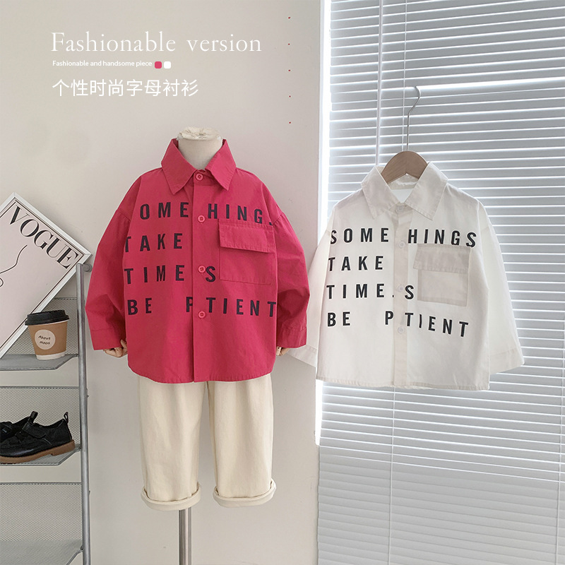 风之谷2022秋季新款童装儿童韩版潮范字母白衬衫男...